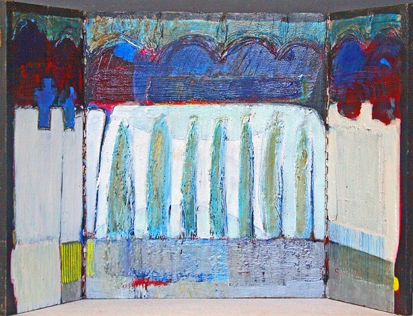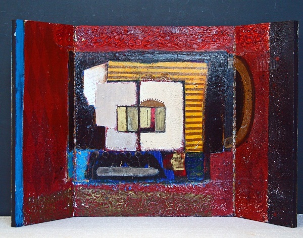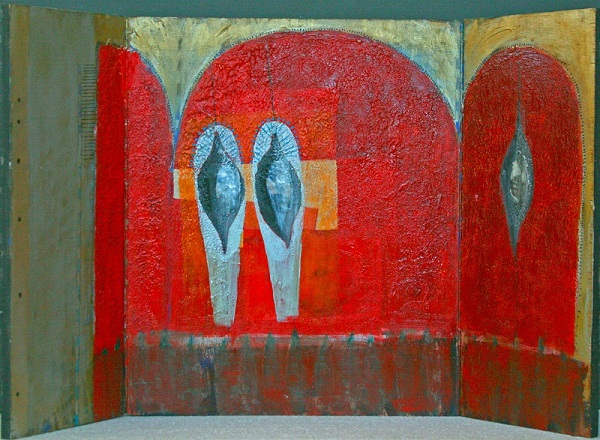 In de eerste serie ‘schilderijen’ en serie ‘drieluiken’ zijn de Oudheid en de Vroegchristelijke periode de inspiratiebron. Gebruik van goud en tekens verwijzen hiernaar.
