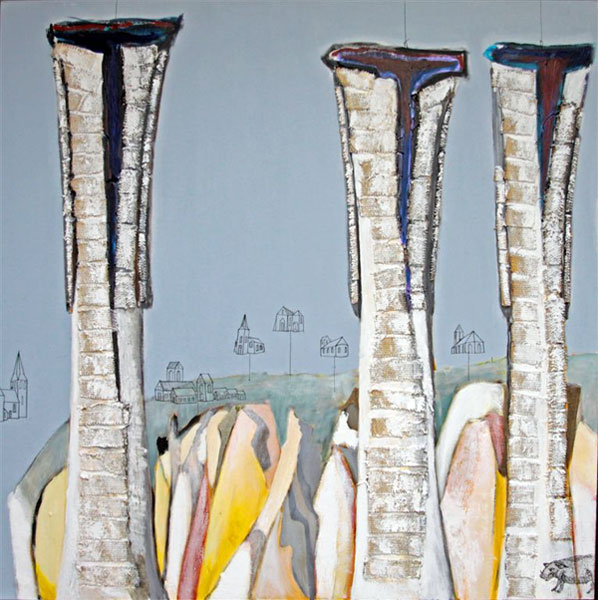 De serie ‘figuren’ is ontstaan na een werkbezoek aan Polen. De kennismaking met het ruimtelijk werk van Magdalena Abacanowicz leidde tot het maken van een aantal schilderijen, waarbij geabstraheerde gestalten centraal staan. Ze overstijgen de menselijke vorm en zijn universele tekens in het landschap met verwijzingen naar de Keltische cultuur, maar hebben ook raakvlakken met een spiritueel beleven van het heden. Materiaal, kleur, vorm, structuur vormen een bindend element in deze schilderijen.