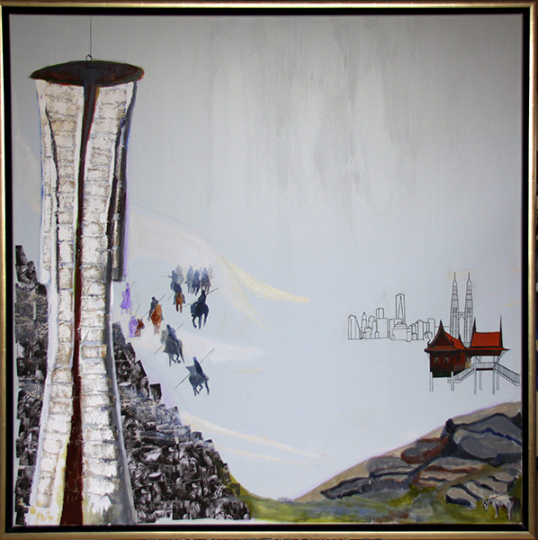 Bij de latere schilderijen uit de serie ‘landschappen’ nemen landschappen en architectonische elementen uit heden en verleden een steeds grotere plaats in.